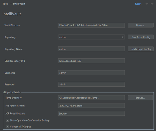 IntelliVault commands can be invoked, via right clicking any path below a jcr_root node.