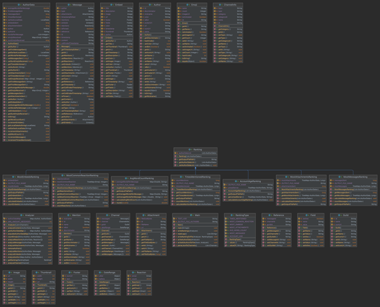 The analyzer reads each message and tracks a multitude of information for each specific author/chatter, automatically sorted by TreeMaps.